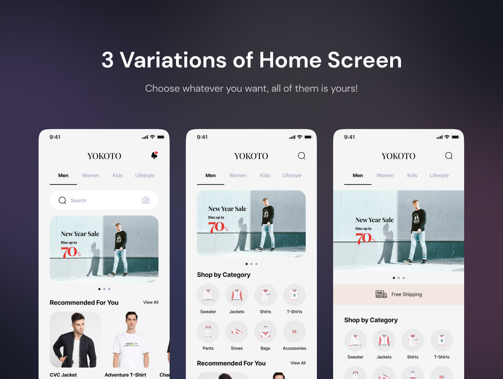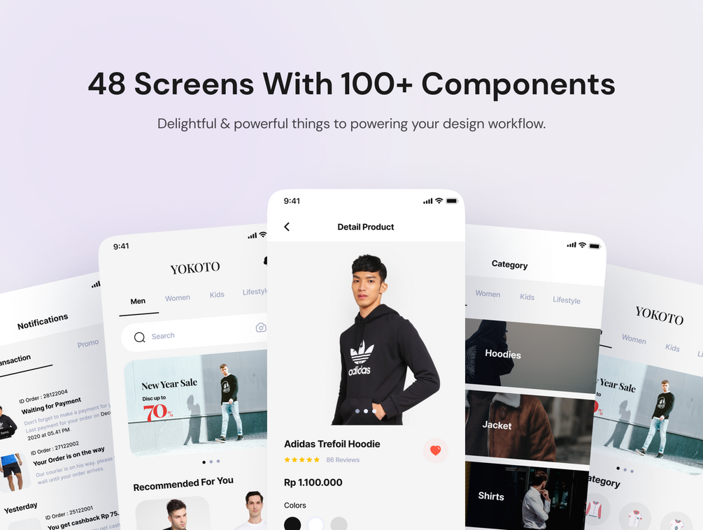Yokoto is a fashion clothing shop UI Kit to help the designer complete their projects.